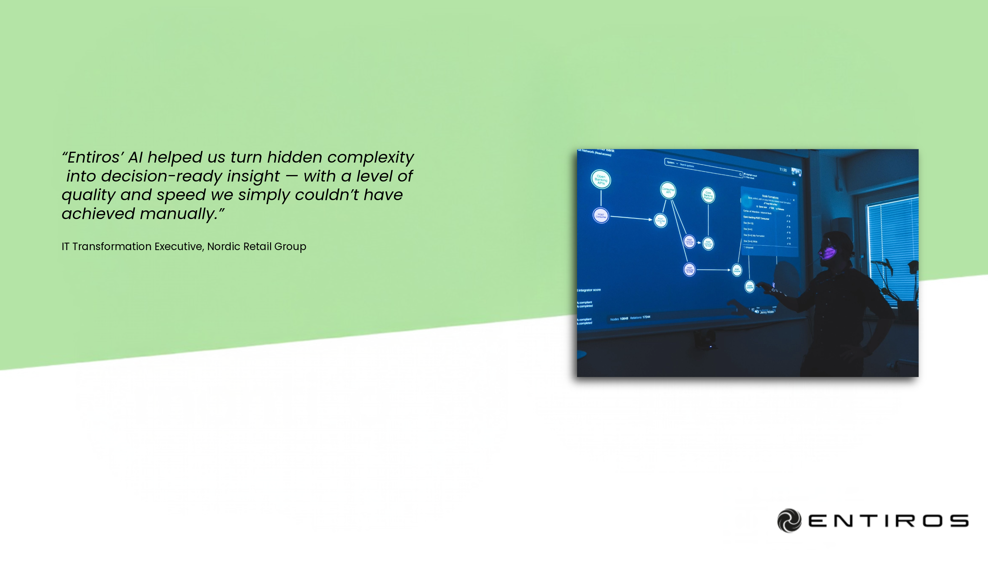 “Most transformation programs start with system choices and platform decisions. Integration risk rarely sits in the future architecture. It sits in the current reality. What Entiros provides is not analysis, but integration context. A structured understanding of how integration actually works across the organization. That context becomes the foundation not only for ERP decisions, but for transformation, AI and continuous change.”